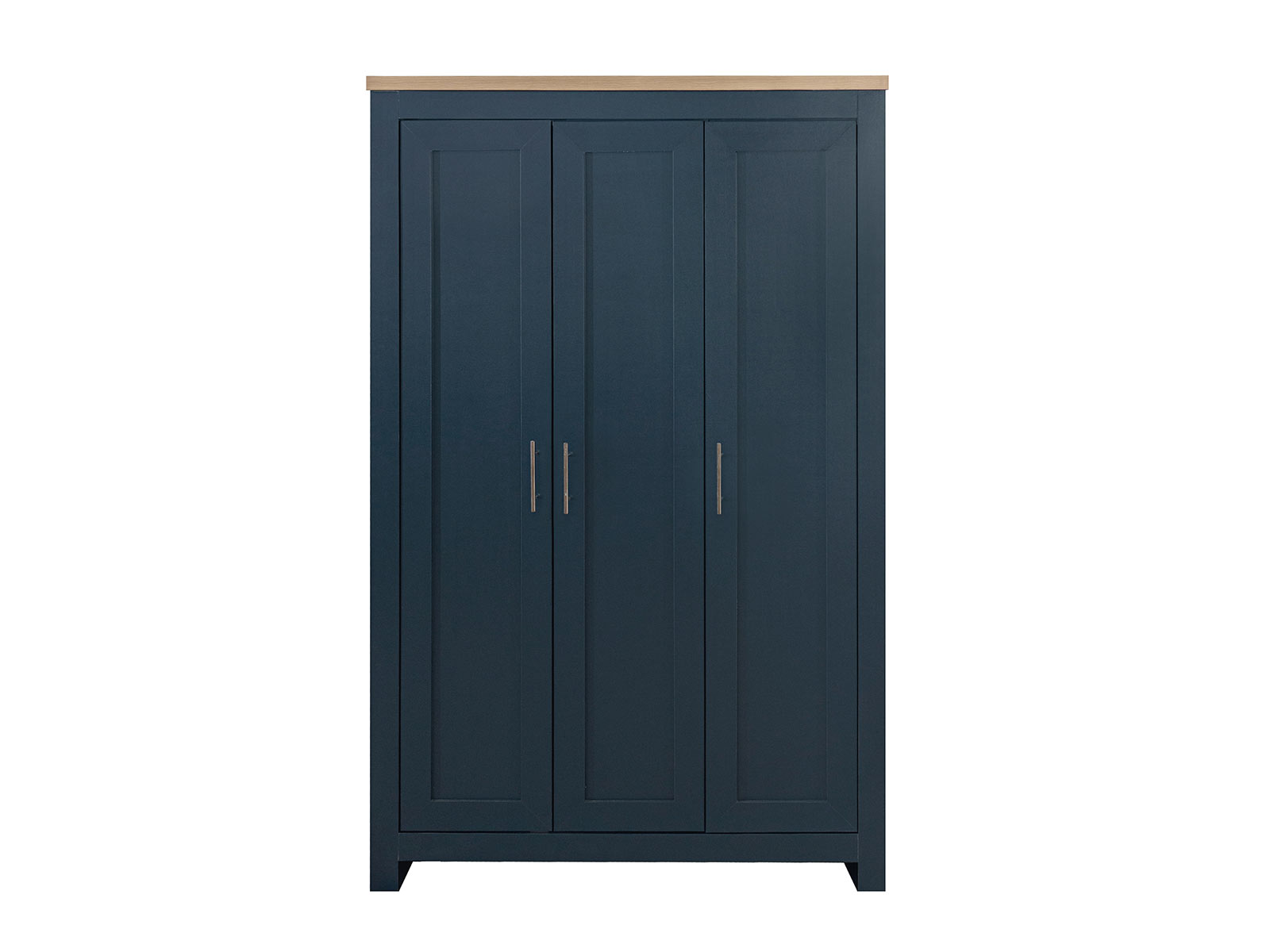 The Highgate 3 door wardrobe is spacious behind double doors, featuring a hanging rail. The doors are finished off with contemporary silver handles.
